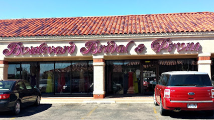 Roomy salon offering brand-name wedding dresses & colorful formal gowns for special occasions.