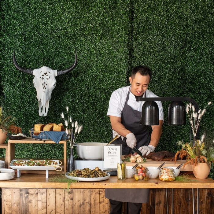 fundamental events is a professional catering company that loves making your parties a little easier and a lot more delicious. Drop-off catering services and full-service catering solutions in and around Inglewood, California include market-inspired, beautifully prepared meals that effortlessly bring your gatherings to life. Expert catering services are ideal for anyone looking for a stress-free way to feed a crowd. Choose from grazing menus, small plates, a full bar, appetizers, plated meals, dessert bars, and chef stations. Enjoy buffet and family style lunches or dinners for your production team, corporate event, wedding, baby shower, quinceañera, or other large gathering.