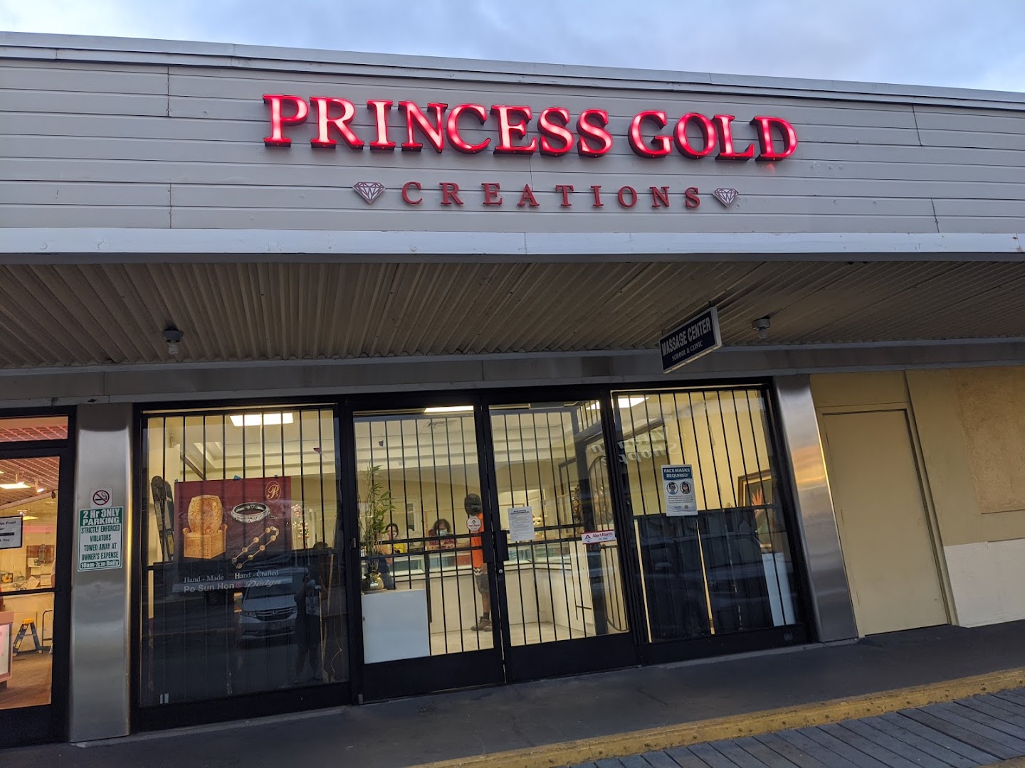 Strip-mall shop with custom-designed, gold Hawaiian jewelry including bracelets, rings & pendants.