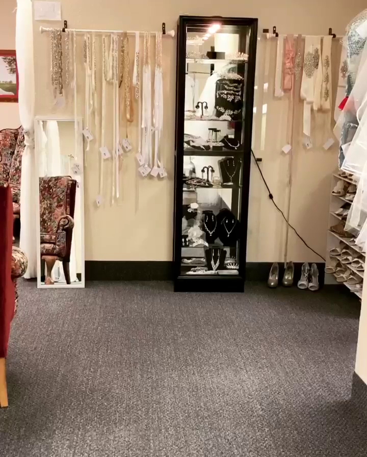 Bridal shop in a strip mall offering designer wedding gowns, tuxedos & other formalwear.