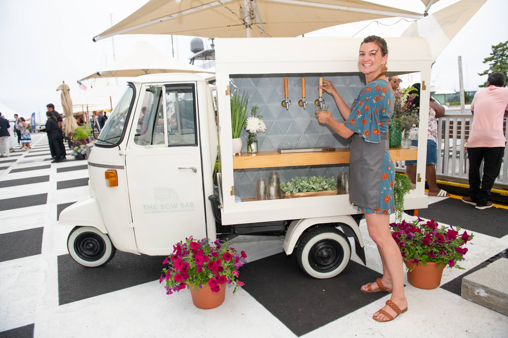 Discover the enchantment of The Bow Bar’s mobile bartending services at a spectacular 50th birthday celebration in the heart of Newport, Rhode Island. Our elegant tap cart, adorned with a Hawaiian-inspired theme, provided a captivating focal point at the SafeHarbor Shipyard, where we collaborated with the incredible team at Belle’s Cafe to create an unforgettable evening.
