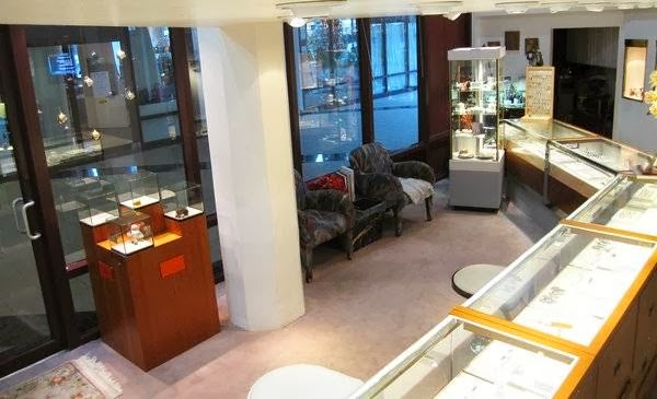 This compact jeweler showcasing premade & custom pieces also offers watches & custom design.
